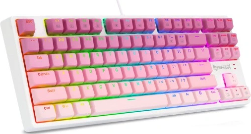 Высококачественная механическая игровая проводная клавиатура со светодиодной подсветкой, 80%, цвет клавиш розовый,  влаго- и пылезащита.